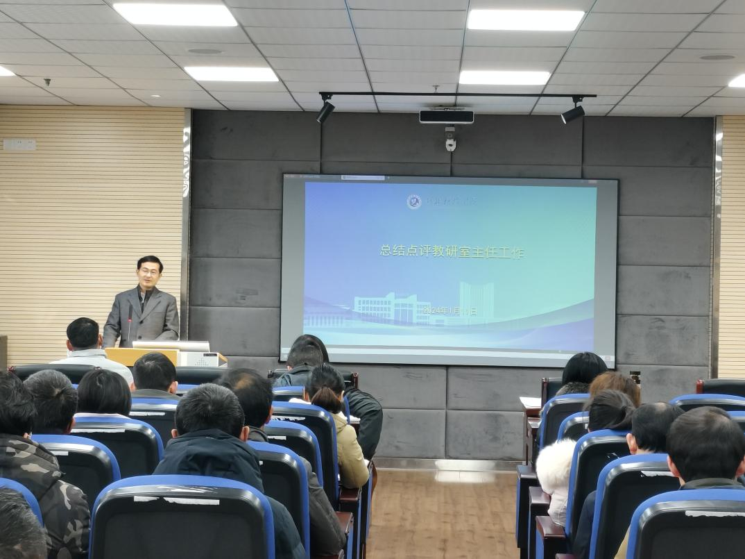 宋铁山、吴喆等十位教研室主任从思想政治、教学工作、科学研究、社会服务、人才培养等方面总结了各教研室2023年取得的突出工作成绩和存在不足,初步谋划了2024年发展性工作重点。经理蔡飞同志对教研室工作做了总结点评,他感谢各教研室一年来所付出的努力,并祝贺大家取得的成绩,同时就进一步做好教研室工作提出三点要求:一是要守规矩,坚守师德师风底线,坚持科研诚信,遵守规章制度;二是要重团结,注重加强科室内部、科室之间和科研团队的沟通交流和团结合作;三是要谋发展,在教学工作做优、科研工作做强、员工工作做实、社会服务做广等方面下功夫、出成绩。