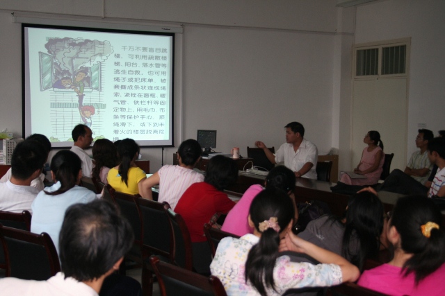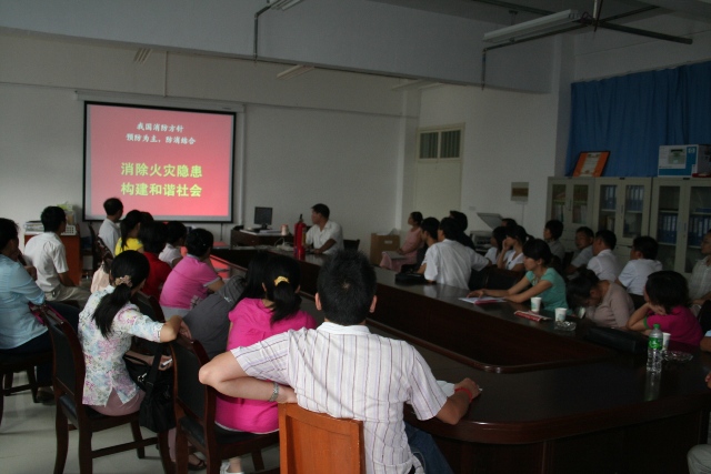为了加强防火意识,公司于2008年9月24日聘请消防官兵在会议室举行消防意识讲座,与会的老师有各教研室实验室负责人。