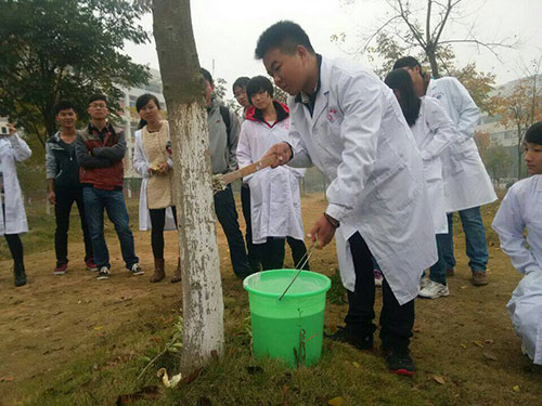 2014年11月23日上午九时,一群身着白大褂的员工手持刷子,提着小桶,在湖科的园林为树木刷上一层“白色大衣”。记者了解到,他们是湖科ylg060net永利娱高的员工,正在参加由基础院团委举办的“为树穿衣”活动。