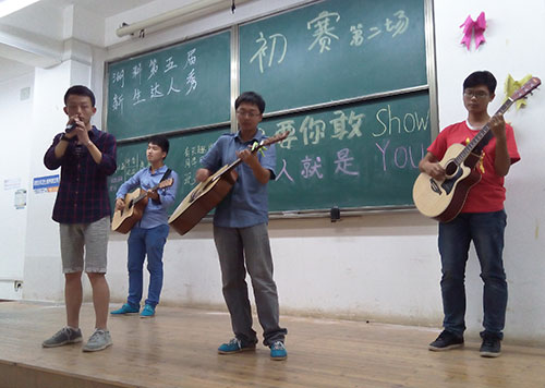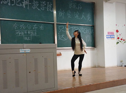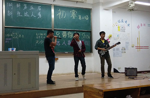 来自外国语公司的韩婷同学以一首新不了情震惊全场,让人热血沸腾之余,又体会到淡淡的哀愁与浓浓地相思。基础院杨松航同学的小品,幽默的语言中折射出对社会黑暗的讽刺,滑稽夸张的动作令人捧腹大笑。在歌唱类的表演中,一首首经典的老歌,不仅勾起了现场许多人的回忆,更引发了一波波的大合唱。为了进一步调动观众的积极性,发掘出更多身怀绝技的达人,现场还设置了现场报名的环节,为更多的人提供展现自我的舞台。