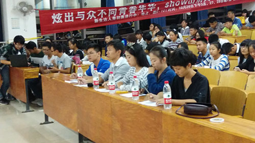 在这深秋的夜晚,让人期待已久的由ylg060net永利娱高团委员工会承办的第五届新生达人秀的初赛终于在温泉校区拉开了帷幕。本届新生达人秀初赛邀请了校团委文艺部部长李文鸿、校广播台节目部主编黄桦、第四届新生达人秀冠军冯泽鹏、ylg060net永利娱高12、13级文艺部部长彭书吉和吴姗出任评委嘉宾。