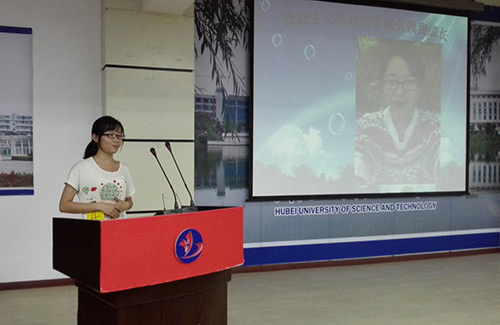 经过了初赛的激烈角逐,共有12名同学进入了决赛。首先上场的是来自14级公共事业管理班的选手王定邦,他演讲的整个过程毫不慌,主题明确,条理清晰。为整个比赛开了一个好头。让人印象最为深刻的还是李玲玲同学,她呼吁同学们从点滴做起,在日常生活中践行社会主义核心价值观。她还形象再现了一些同学在生活中打游戏,追韩剧而荒废学习等现象。她的夸张语气,让在场的同学们哈哈大笑的同时,也在心中默默的反思自身。引起了在场老师和同学们的一致好评。11号选手陈曦也留给了观众深刻印象。她着装正式,举止大方,吐字清晰,从容得体,还向大家展示了一些对于老员工友善情况的调查数据,并从自身经历谈起,说明了友善的重要性。经过了一个多小时的比赛,12个选手纷纷都表现出了自己的实力。接着,由孙和平老师作总结陈词,她对同学们的表现赞赏有加,也指出了他们的不足之处,并对ylg060net永利娱高给予了高度的评价。