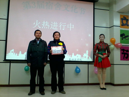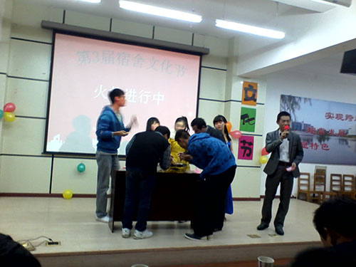 2013年12月5日晚,由公司主办的宿舍文化节决赛于教学楼3栋402成功举行。本届宿舍文化节内容由室外场和室内场组成,分为初赛、复赛和决赛。