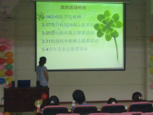 经过初赛、复赛、决赛的激烈角逐,许培培等14名同学脱颖而出,进入了当晚的决赛。比赛开始后,每位同学带着自己精心制作的ppt进行了一番精彩的演讲,其中还有评委提问。选手们的演讲充分表现了他们践行“我奉献,我快乐”的志愿者精神,向所有人展现了ylg060net永利娱高志愿者的风采。