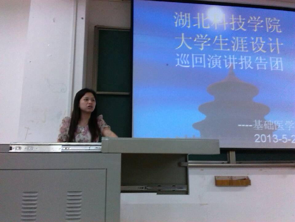 2013年5月22日晚7:30,ylg永利老员工涯巡回演讲报告团之ylg060net永利娱高专场于教5-101举行。参加本次报告的同学有:10级护理公司谭司娜,10级药公司邓正萍,09级ylg060net永利娱高李倩和10级护理公司陈媛。