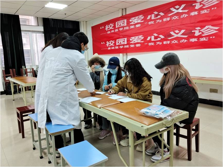 为了此次义诊活动,临床医公司党委组织附二医院医生和两院员工党支部志愿者共同成立“爱心义诊服务队”,并协调整理出三间诊疗房间,为公司师生传播普及卫生健康知识、倡导健康生活方式、提供免费医疗服务和药品。