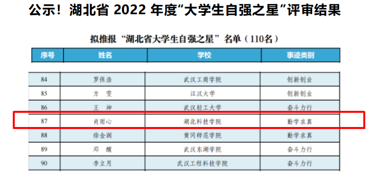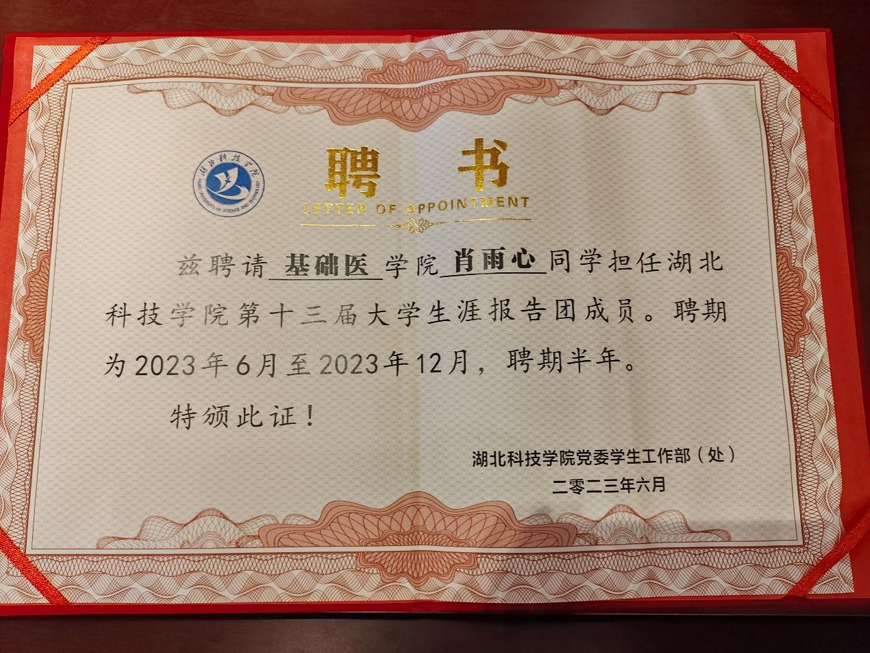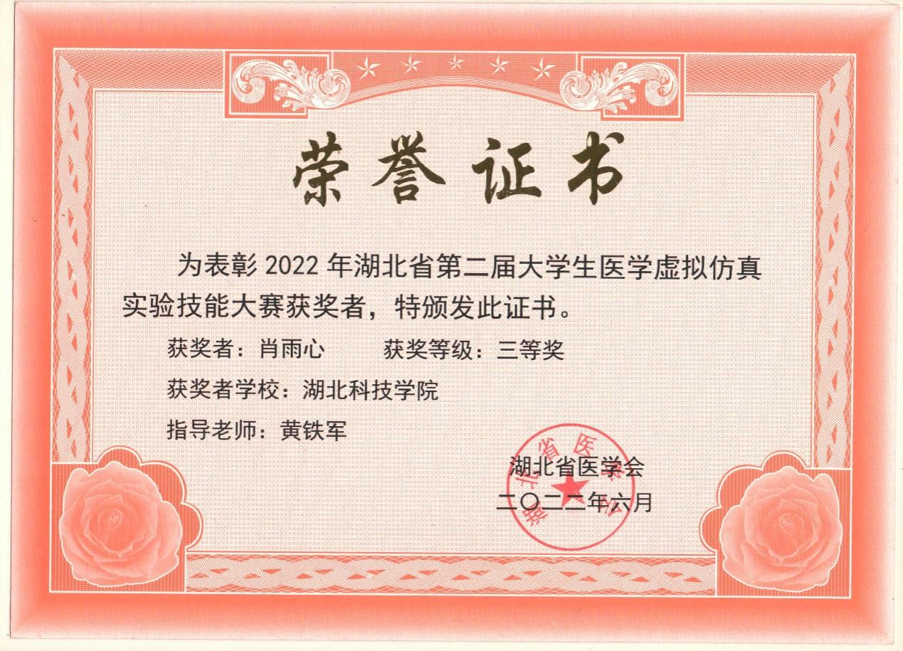 近日,由省团委、省学联组织开展的2022年度“湖北省老员工自强之星“评选结果揭晓,公司ylg060net永利娱高2020级临床医学专业肖雨心同学荣获2022年度“湖北省老员工自强之星“荣誉称号。