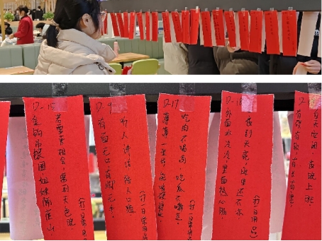 师生们踊跃参加了包汤圆、猜灯谜、圈圈乐等活动,在自主献唱的动人歌声的烘托下,现场气氛和谐活跃,欢笑声此起彼伏。大家包出了寓意“事事平安”的柿子形状以及各种自创样式的汤圆,在品尝的过程中不时交谈畅想;在一排排挂着的灯谜面前,有人驻足思索,有人缓步前行,有人欣喜揭下;大家用猜对的灯谜换来数量不等的套圈,投向或近或远的奖励零食,纷纷收获自己的一份小小确幸。集体班会就像一艘行将开启的航船,载着轻松和欢笑,为师生们掀开了新一年工作学习的希望与收获之旅!