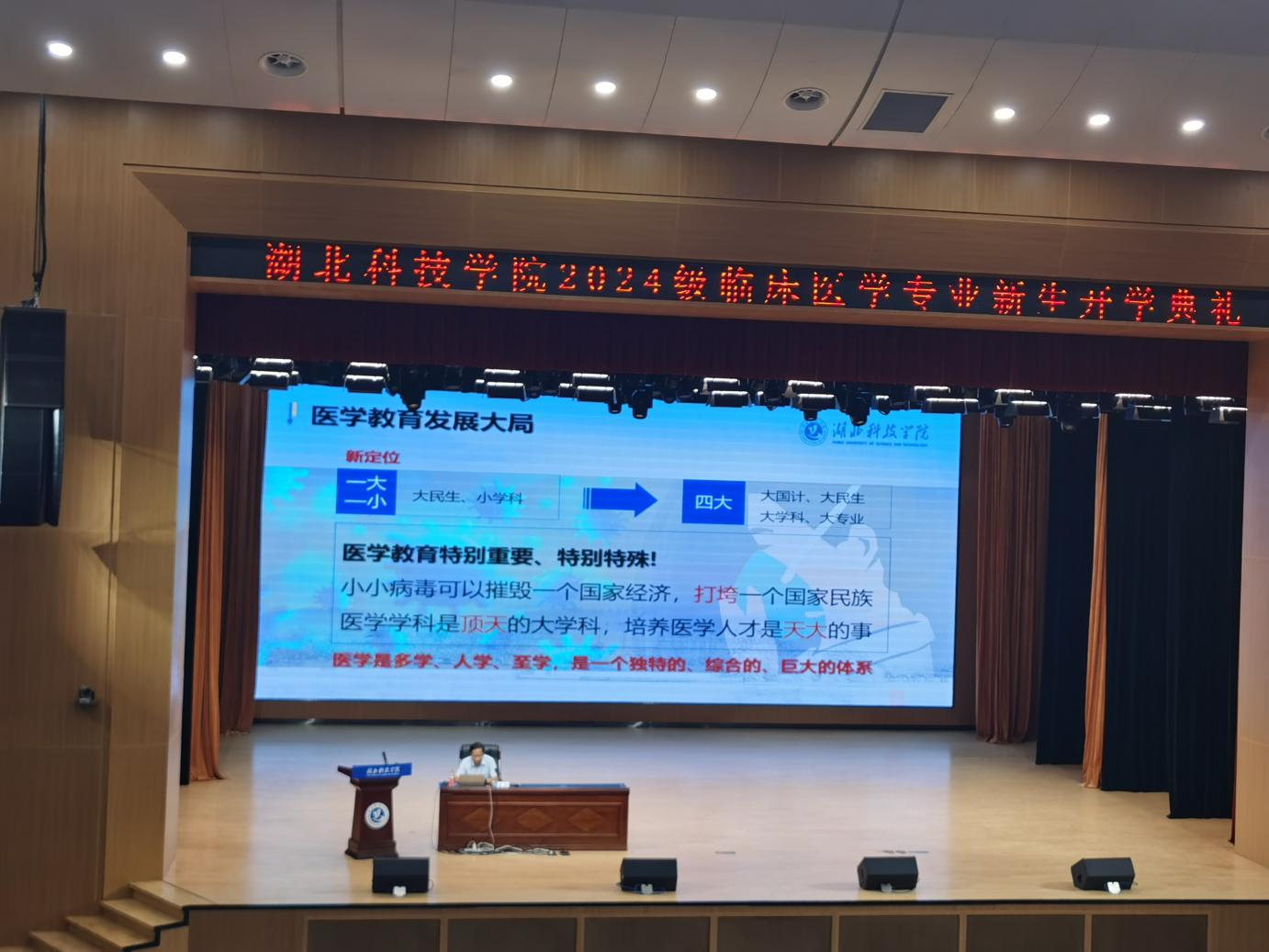 在随后的入学教育中,医学部党工委书记高卉带来了主题为“医员工职业发展路径”的专题讲座,高书记以其深厚的医学造诣和丰富的行业经验,从医学专业的独特视角出发,为医学新生们勾勒了一幅清晰而充满希望的职业发展蓝图,让他们对医学事业有了更加全面而深刻的认识。