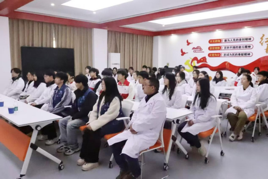 教师代表王柏军老师登台发言,他凭借深厚的专业素养,不仅为同学们深入浅出地传授专业知识,更从医者品德塑造的高度,为大家指明前行方向。紧接着,员工代表徐华天同学走上讲台,结合新时代青年的视角,分享了对生命价值和奉献精神的深刻思考与独特感悟,引发了同学们的强烈共鸣。随后,三献服务队代表高睿老师带来了一个个令人动容的真实故事,这些故事如同一股股暖流,传递出对生命的尊重与热爱,让在场师生深受触动。最后,红十字会会长郑强详细介绍了红十字会在公益领域的卓越贡献,并满怀热忱地号召同学们积极投身志愿服务,注重自身品德修养。这一呼吁如同一颗火种,瞬间点燃了同学们的热情,气氛热烈非凡。