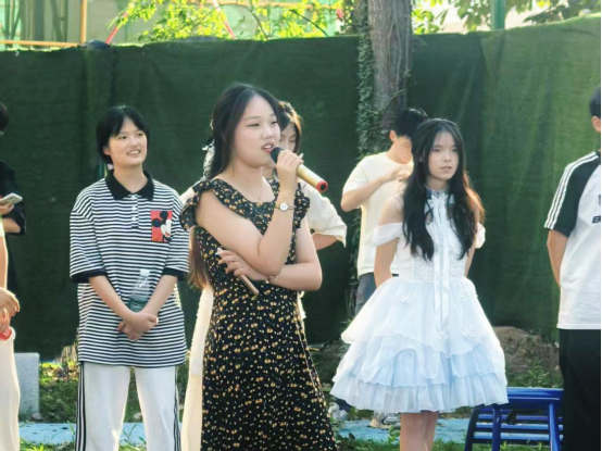 大合唱阶段,四个小组在领唱同学带领下,依次闪亮登场。同学们精神饱满,歌声嘹亮。《稻香》勾起大家对美好田园生活的向往;《七里香》传递出青春的懵懂与纯真;《江南》营造出温婉的氛围;《我怀念的》则唱出对过往美好时光的眷恋。各小组在演唱中融入独特创意,有的加入和声,有的设计简单动作,充分展现出创新能力与艺术才华。