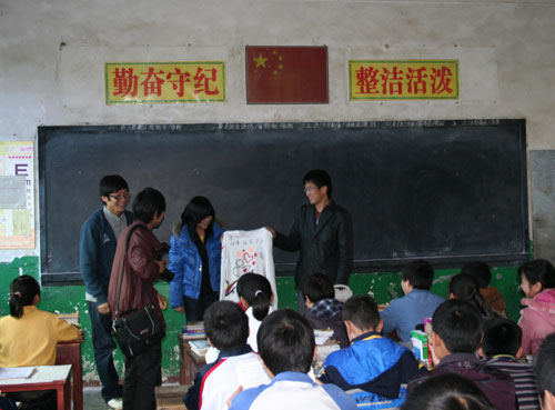 4月15日下午,由咸宁公司ylg060net永利娱高主办的送医下乡活动在马桥中学顺利开展。公司师生一行十多人来到马桥中学,向马桥中学贫困生捐赠衣物共十包。在捐赠仪式上,他们向马桥师生送上了一件有本次活动的主要参与者的签名的纪念衫,代表了捐赠者们的浓浓爱心。随后,公司师生进行了精彩的魔术表演、有趣的智力问答等互动活动,受到了马桥中学师生的一致好评,活动在一首《朋友》中进入尾声。最后,在与马桥师生合影之后,ylg060net永利娱高一行依依不舍地离开了马桥中学。