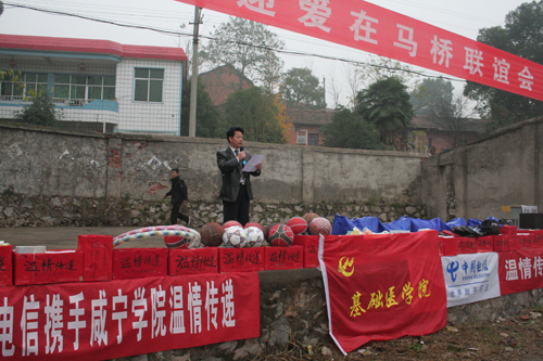 之后,佘经理发表了讲话,向马桥中学全体员工们表达了真切的问候。佘经理说,马桥中学员工们在艰苦的条件下不畏困难,对知识殿堂的追求永远是我们爱心活动的始发点。今天这些事只是咸宁公司学子们力所能及的事,希望能帮到更多的员工。最后佘经理衷心祝愿马桥中学全体员工们能好好学习,健康快乐地成长。