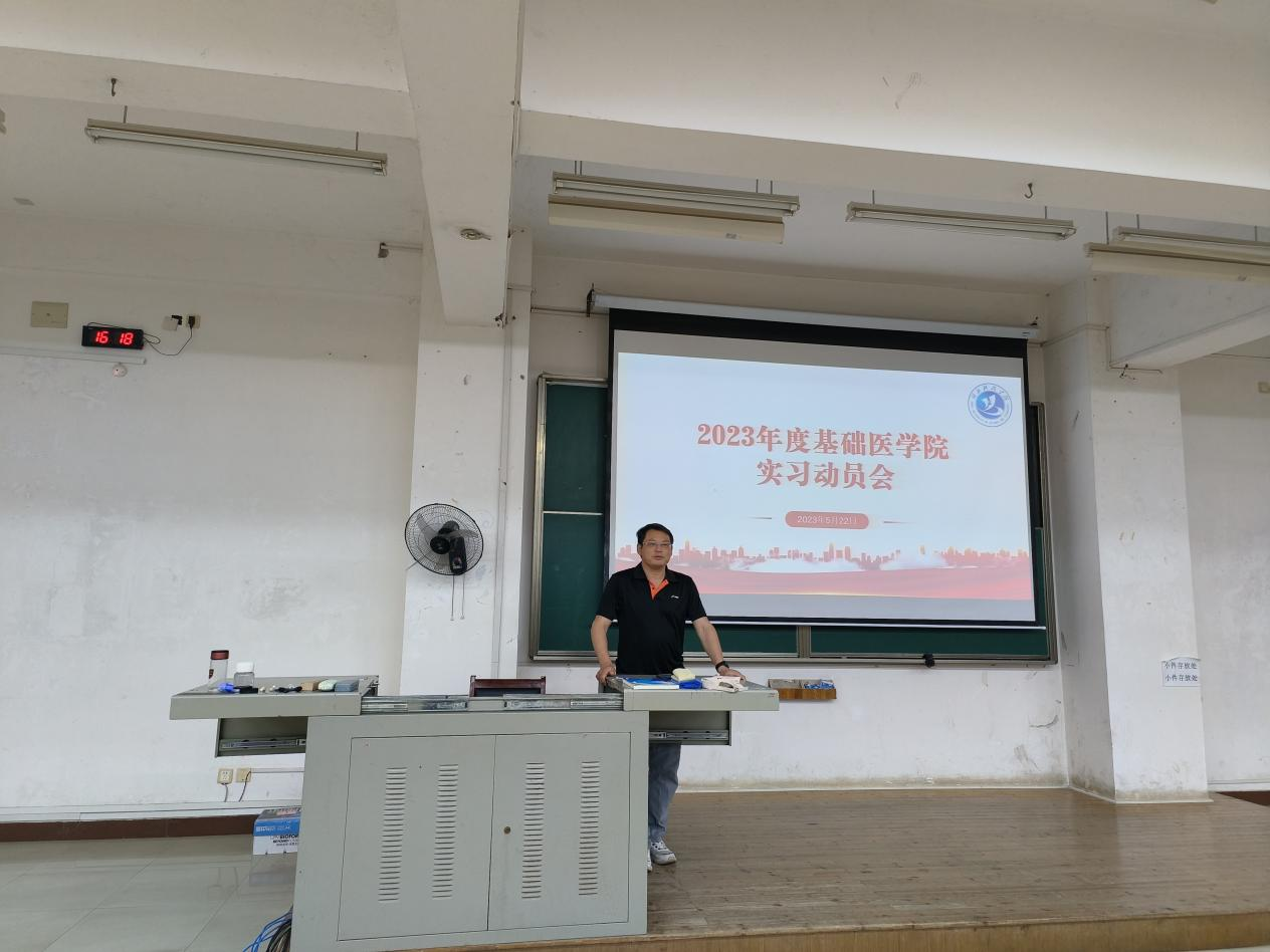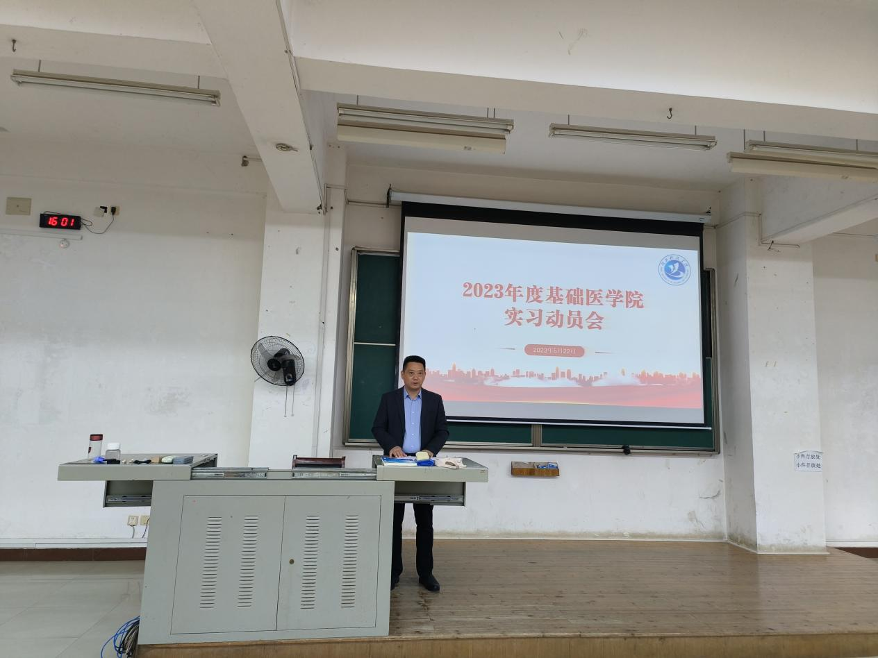 5月22日下午,ylg060net永利娱高2023年度实习动员会于教学楼5栋101顺利举行。ylg060net永利娱高党委副书记佘同辉、副经理蒋汝刚、2019级卓越医师班班主任黄铁军、2021级村医班班主任付国臣、负责实习工作辅导员洪莹莹及实习班级全体员工参加此次动员会。会议由佘同辉主持。
