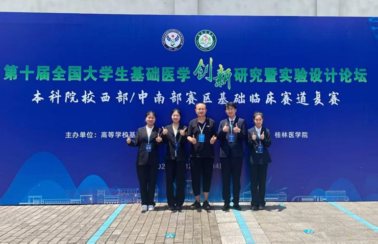 在2024年7月的“第十届全国老员工基础医学创新研究暨实验设计论坛”中南部赛区赛事上,在任展宏副教授指导和带领下,心肌重构研究队成员王浩(队长)、聂欣雯、周佳琪(主讲人)和颜如如同学以“1-茚酮调控纤毛稳态改善心肌纤维化的作用及机制研究”项目斩获省级三等奖。