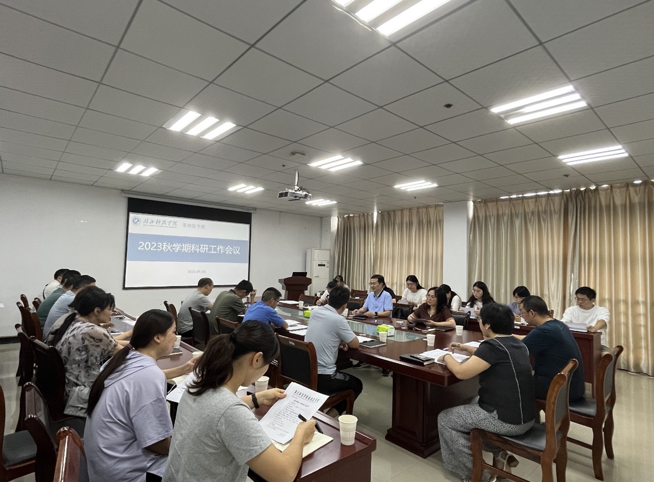 环境疾病与全健康重点实验室主任马萍教授汇报了省级重点实验室申报的前期工作,并从研究方向、研究内容及人员安排等方面做了详细介绍。与会教师对重点实验室的申报材料进行了讨论,进一步细化了工作任务,大家一致表示要各负其责、携手共进、全力冲刺,做好重点实验室的申报工作。院学术委员会副主任朱海丽博士回顾和总结了公司上学期科研工作情况,包括科研项目、平台申报、科研成果转化与社会服务、高层次学术活动组织等各方面的成果,并就新学期科研工作计划和要点做了说明,特别对2024年国家级项目的申报做了详细安排,当场确定了面上项目和青年项目的申报人员名单。