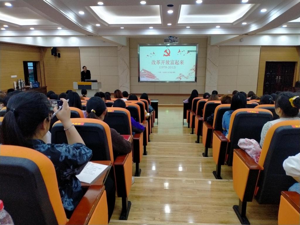 会上,明智老师指出党的十一届三中全会是伟大的历史性转折。而社会主义市场经济体制的确立,邓小平“三步走”发展战略,以改革开放和社会主义现代化建设新时期的理论创新,不断推进了社会主义改革开放。最后明老师讲述了改革开放和社会主义现代化建设新时期的巨大成就及中国独特的发展模式。在改革开放和现代化建设的进程中,逐步形成了以全面推进党的建设新的伟大工程来推动中国特色社会主义伟大事业发展的格局。