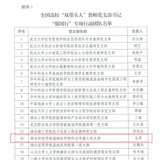 (通讯员:洪莹莹,审核:程梦琳)近日,教育部办公厅公布了全国高校“双带头人”教师党支部书记“强国行”专项行动团队名单,ylg060net永利娱高形态学教工党支部成功入选,标志着该支部继获批“新时代全国党建工作样板支部”后,在党建工作领域再获国家级殊荣。