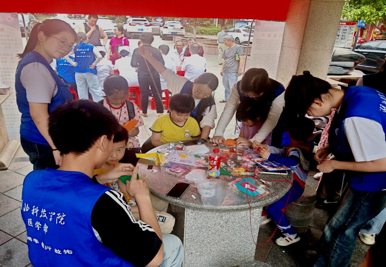 附属二医院大外科支部党员教师则充分利用专业优势,借助人体模型,为社区居民演示心肺复苏(CPR)急救操作,现场跪地示范标准流程并耐心讲解动作要领,提升居民应急处理能力。志愿者与社区儿童还共同开展了手工创作活动,将健康理念融入趣味互动中,通过创意手作传递健康生活理念,增强儿童健康意识。