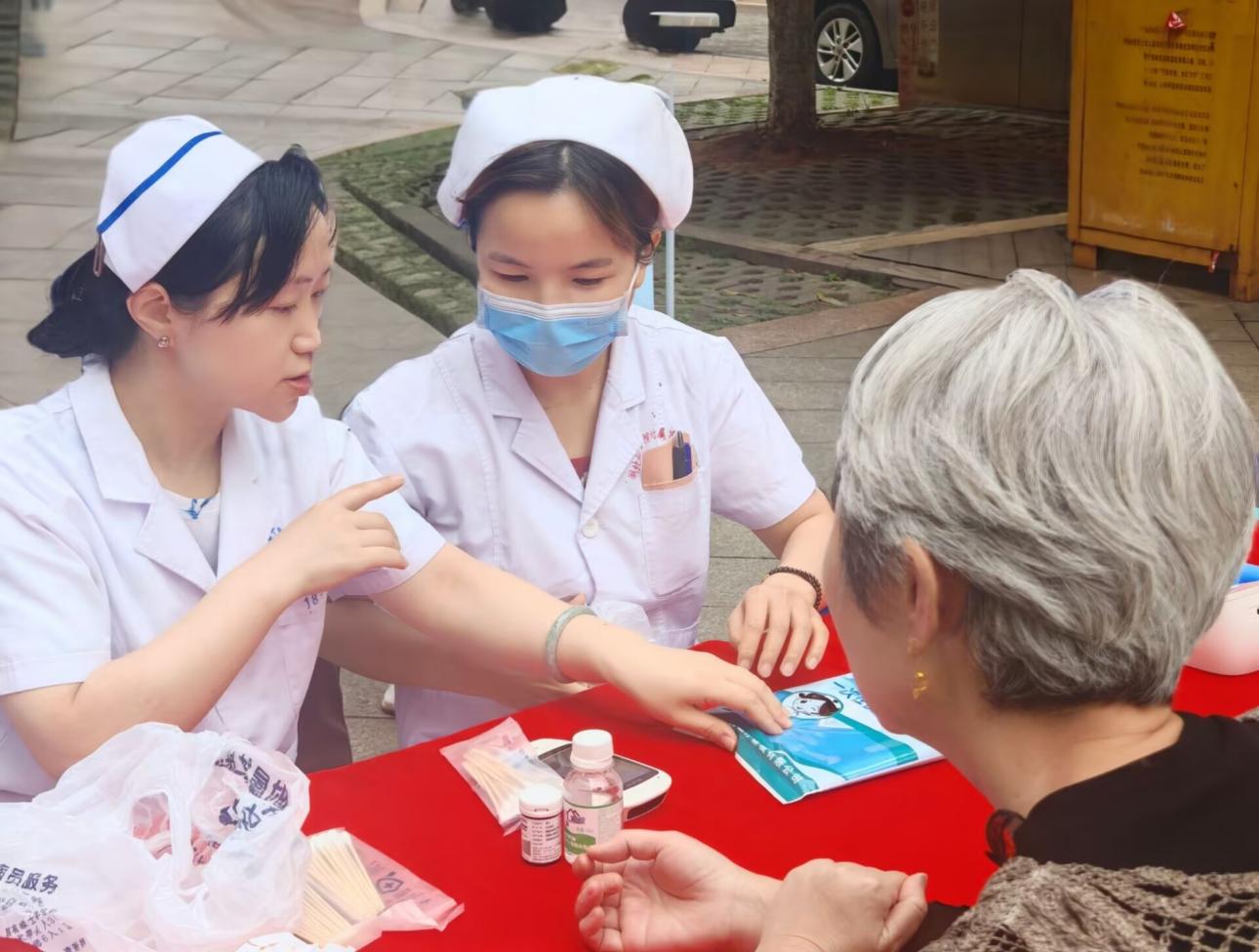 在活动现场,师生们贴心地为居民提供免费血压测量服务,让居民们对自己的血压状况一目了然。针对血压异常者,医师团队凭借深厚的专业素养,现场深入剖析病因,并从饮食搭配、运动计划等多个维度,为居民制定个性化健康管理方案,给予全方位的健康守护建议。员工志愿者们巧妙运用生动形象的生活案例,向居民们普及高血压、糖尿病的日常护理要点以及儿童手足口病的预防知识,让复杂的健康知识变得通俗易懂。现场还精心设置了互动问答环节,居民们热情高涨,踊跃参与,进一步增强了活动的趣味性与实效性。