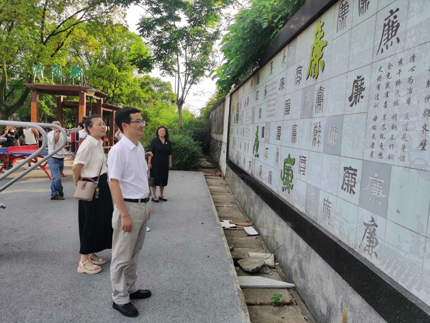 咸宁市桂花廉政主题广场以“清廉守正”为核心,融合了桂花文化与廉政教育元素,通过雕塑、长廊、展板等形式,生动展现了中国共产党反腐倡廉的历史脉络与新时代廉政建设成果。活动中,党员教师们依次参观了“家风金言展区”“廉吏颂歌展区”“明鉴园”等主题展区,驻足品读北宋文学家范仲淹等历史上著名清正廉洁人物的事迹,深刻感悟“公生明,廉生威”的为政之道。展区通过毛泽东、周恩来、刘少奇、朱德、任弼时等老一辈革命家的风采展示,生动呈现了廉洁风范与优良家风,为党员教师树立精神标杆。