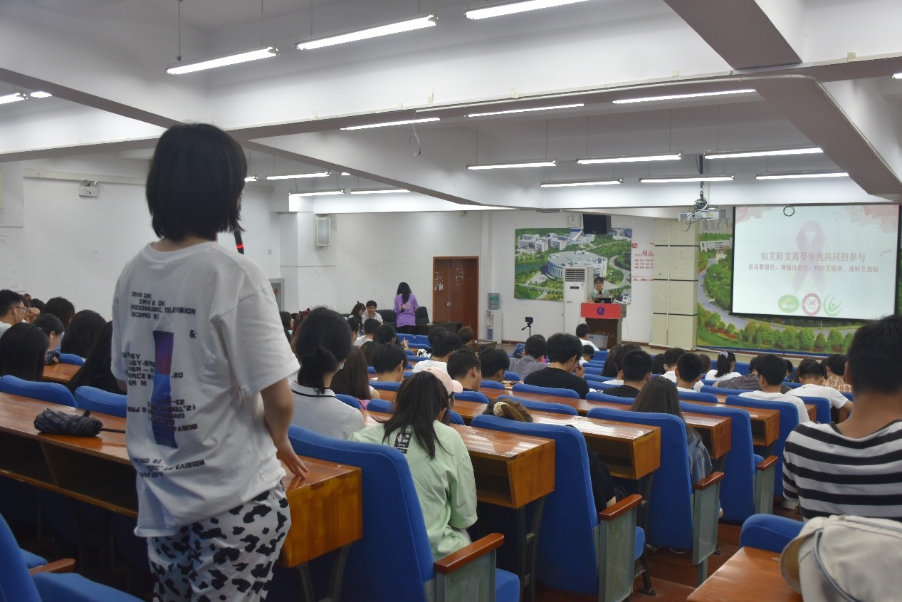 (通讯员/陈吉伦) 为向老员工普及艾滋病相关知识并提高老员工防艾意识,ylg060net永利娱高预防专业负责人王俊芳老师及其随行志愿者于5月27日晚上七点,在教3—402举办了主题为“揽月大讲堂——知艾防艾,主动检测,健康生活”的讲座,近300名员工参加讲座。